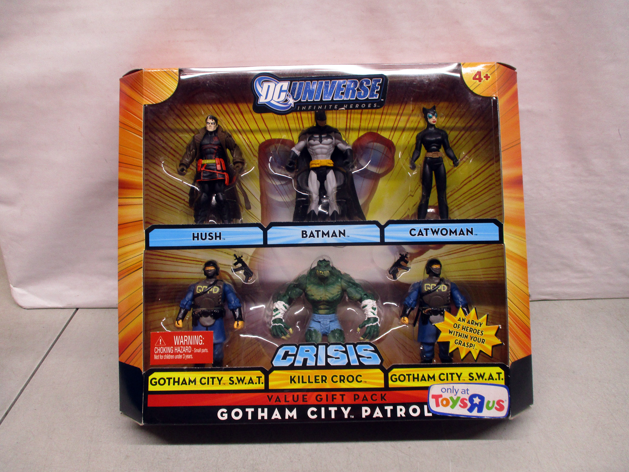 This G.I. Joe action figure represents a police search and rescue officer. Originating from the USA, it is made of plastic. The exact manufacturer and age are unspecified. The figure is still in its original packaging, which includes various accessories such as a gas mask, helmet, and walkie-talkie. Suitable for ages 5 and up, it carries a choking hazard warning for small parts. (Click image to see high resolution version).