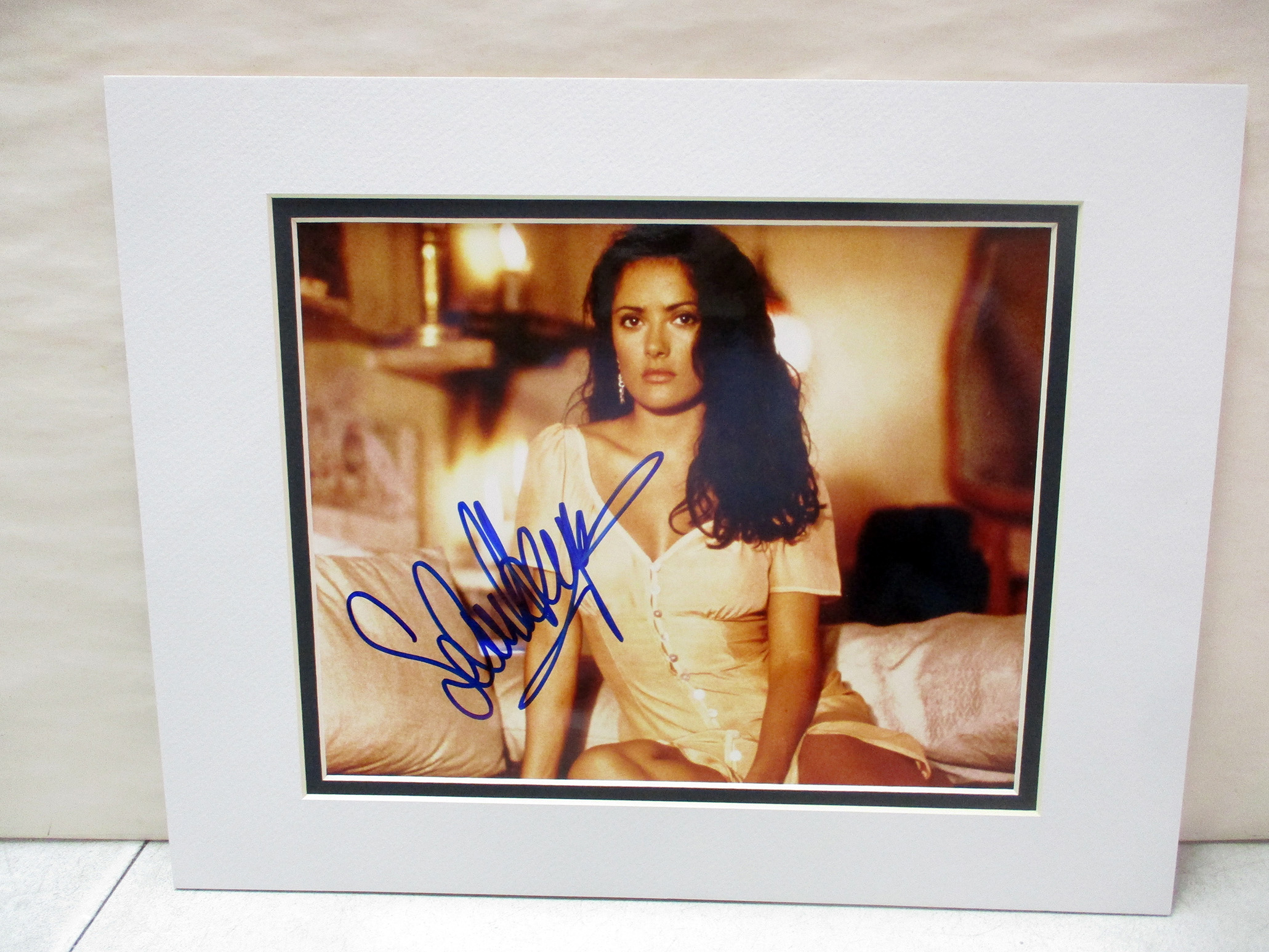 Autographed photograph of an unknown actress, signed with blue ink. The 8x10 photo is matted and features the individual seated on a bed wearing a white dress. The signature is prominently placed on the image. Condition appears good, with minor wear on the matting. Ideal for collectors of signed or entertainment memorabilia. (Click image to see high resolution version).