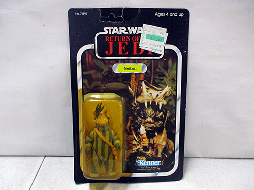 A vintage Ewok Village Action Playset from the Star Wars Return of the Jedi series. Made by Kenner in the USA, this playset dates back to 1983 and includes various accessories and features. The item's material is primarily plastic, with detailed tree structures and accompanying figurines. The box shows some signs of wear and tear but is overall in good condition. (Click image to see high resolution version).