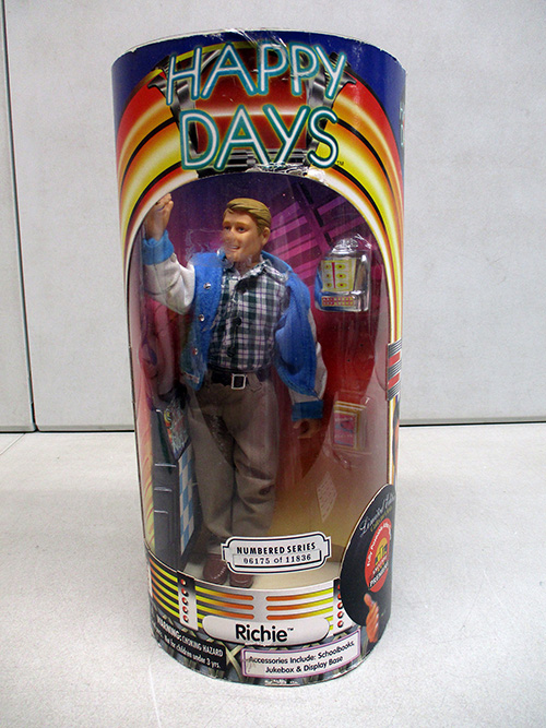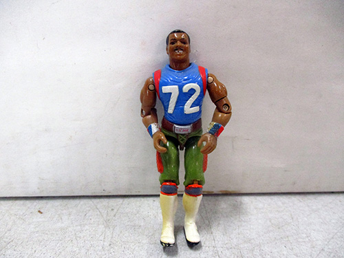 Action figure featuring a male character wearing a white jacket and black pants. Accessories include interchangeable parts such as additional heads and an arm. Shows signs of wear with possible missing or damaged components. Suitable for collectors or restoration enthusiasts. (Click image to see high resolution version).