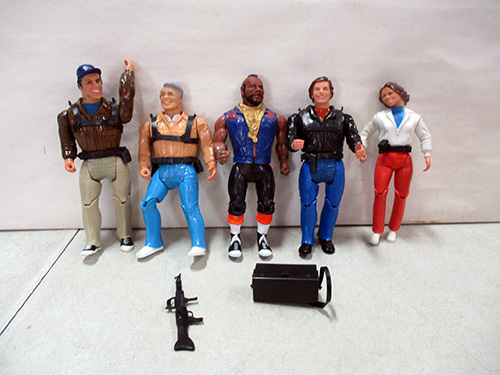 This is a vintage 1983 toy car modeled after The A-Team series, produced by Cannell Prod. Originating from the USA, it is made of plastic and metal components. It features the signature white and red color scheme with The A-Team logo. (Click image to see high resolution version).
