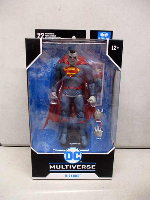 This is a DC Multiverse Batman action figure from the United States. The figure is made of plastic and is intended for ages 12 and up. The box includes Batman with accessories. The figure is produced by McFarlane. It is new and sealed in its original packaging. (Click image to see high resolution version).