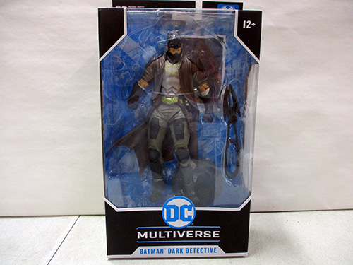This is a DC Multiverse Batman Dark Detective action figure. Originating from the USA, this figure is made of plastic and intended for ages 12 and up. The manufacturer is McFarlane Toys. The figure is new, in its original packaging. (Click image to see high resolution version).