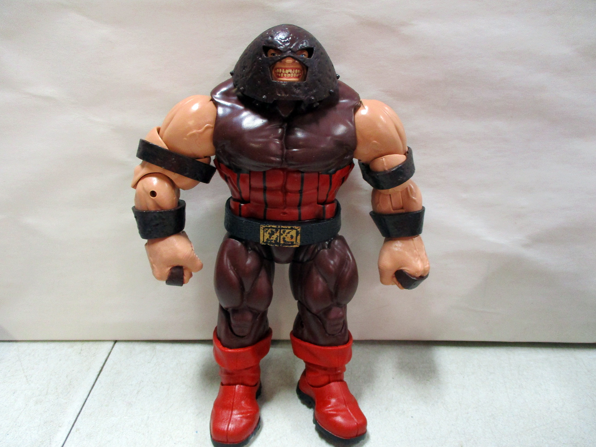 12-inch action figure featuring a transparent chest showcasing internal anatomy. The figure has blond hair, muscular build, and articulated limbs. Its legs are painted with red and black pants, mimicking a split-color design. One foot is missing, and the head has a movable neck joint. Early condition indicates some wear consistent with age or previous use. (Click image to see high resolution version).