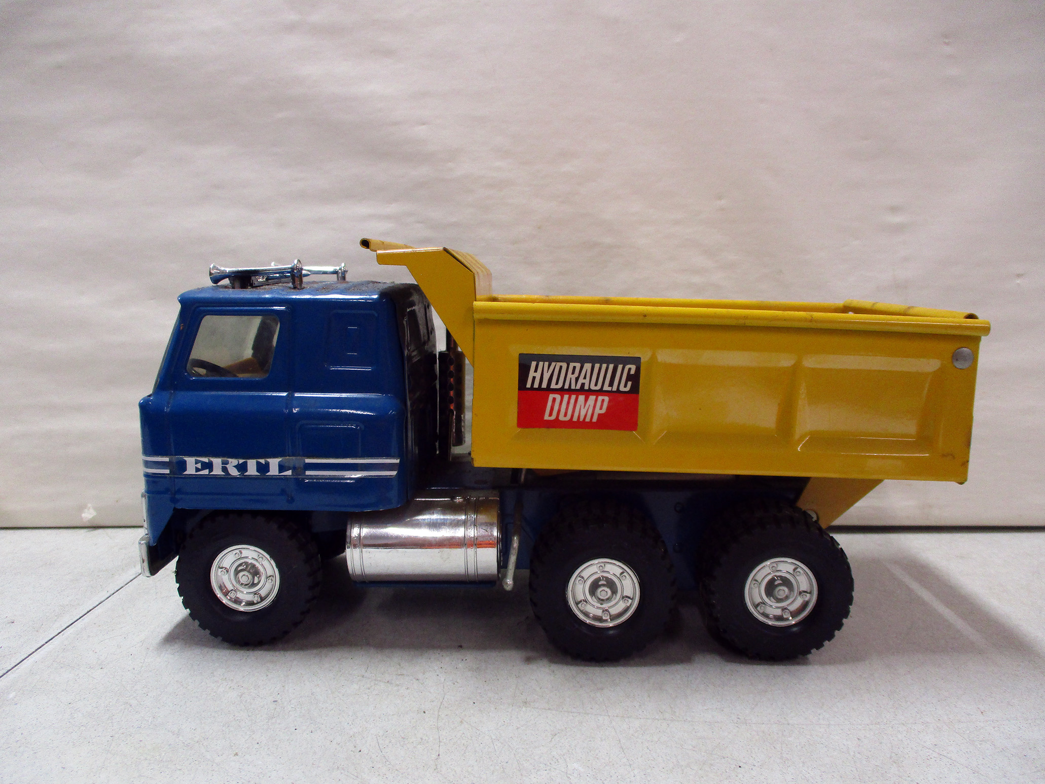 This limited edition dump truck model is made in China from die-cast metal. Featured in its original packaging, it represents a 1:8 scale model known as the Kidda Vehicle Dump Truck. The toy dates back to 1999 and highlights the iconic craftsmanship of vintage replicas. (Click image to see high resolution version).