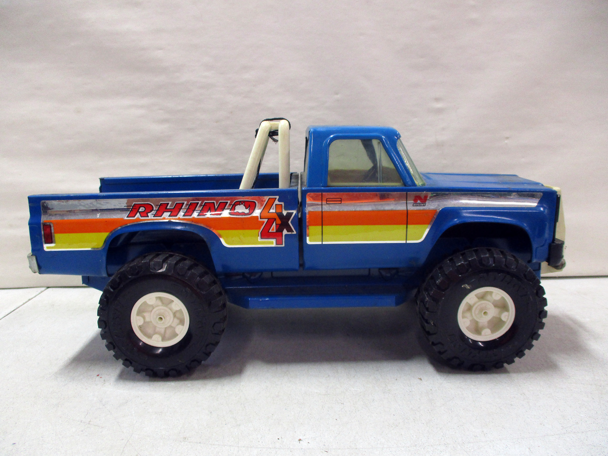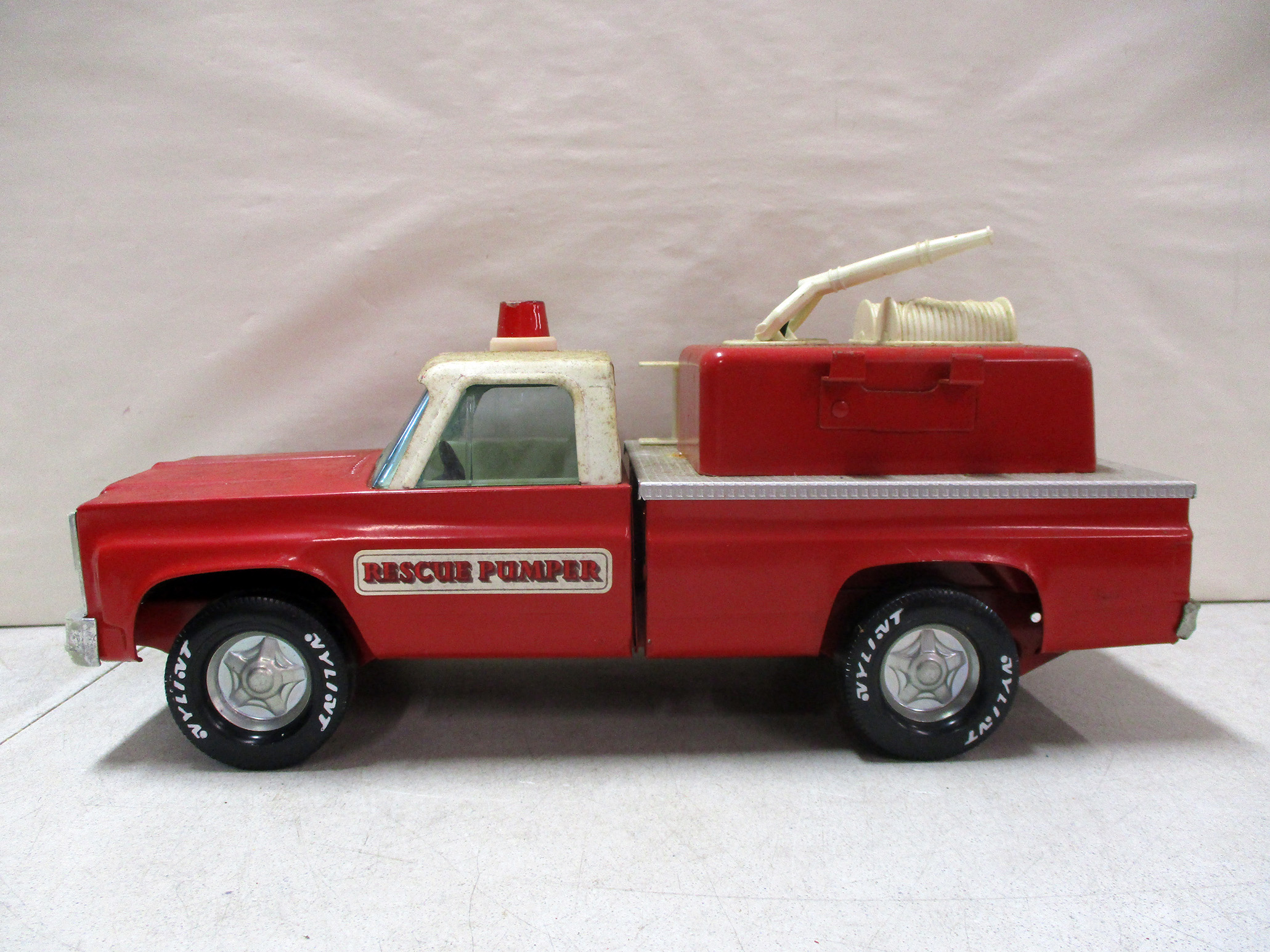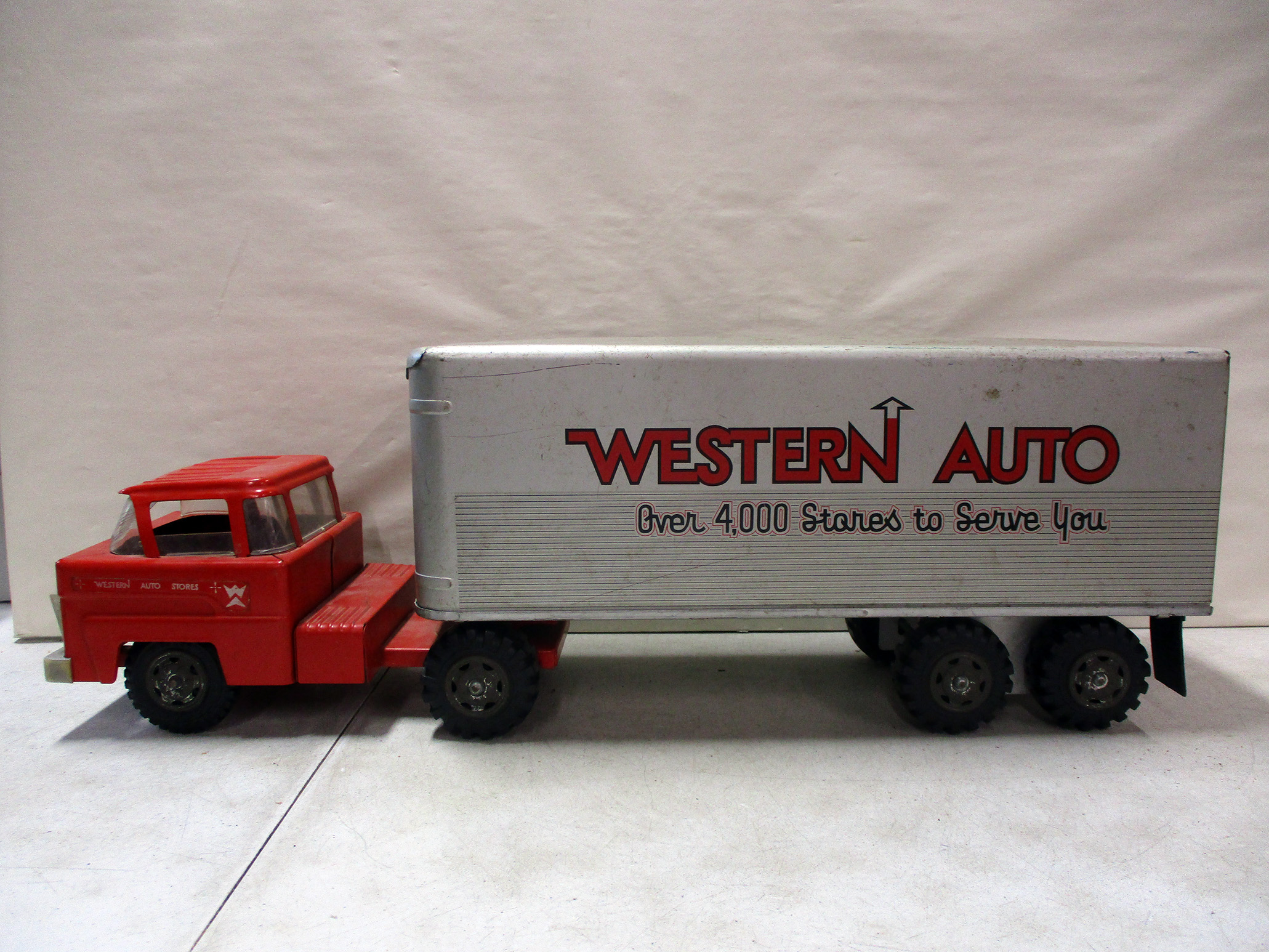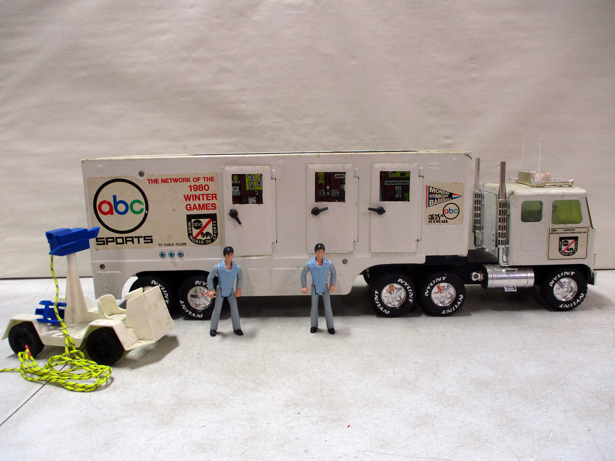 Vintage Nylint NAPA Pit Stop Set No. 865 made in the USA. Includes a steel toy truck, race car, figures, and accessories. (Click image to see high resolution version).