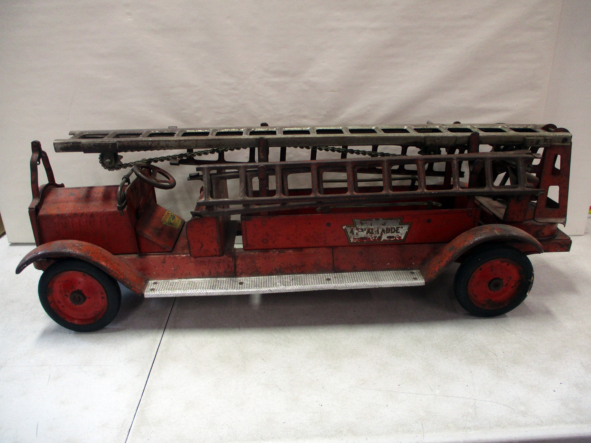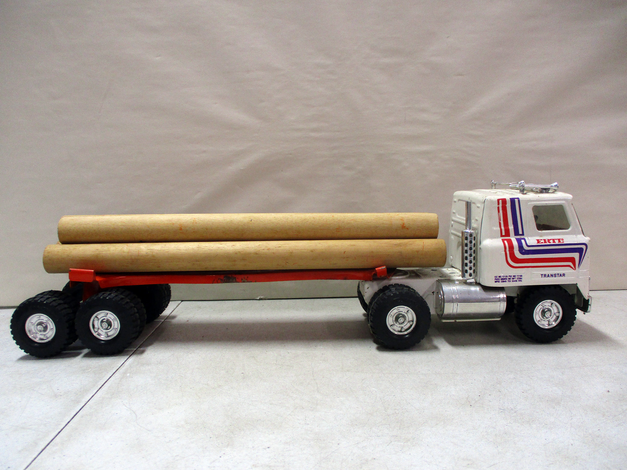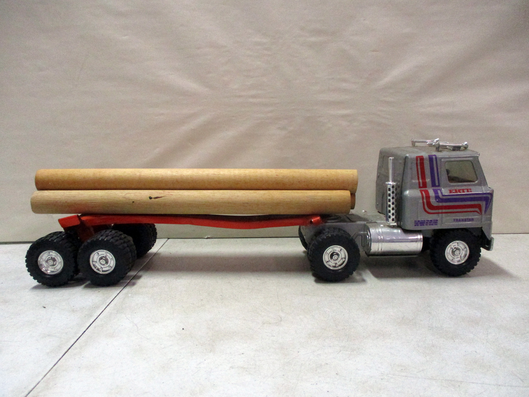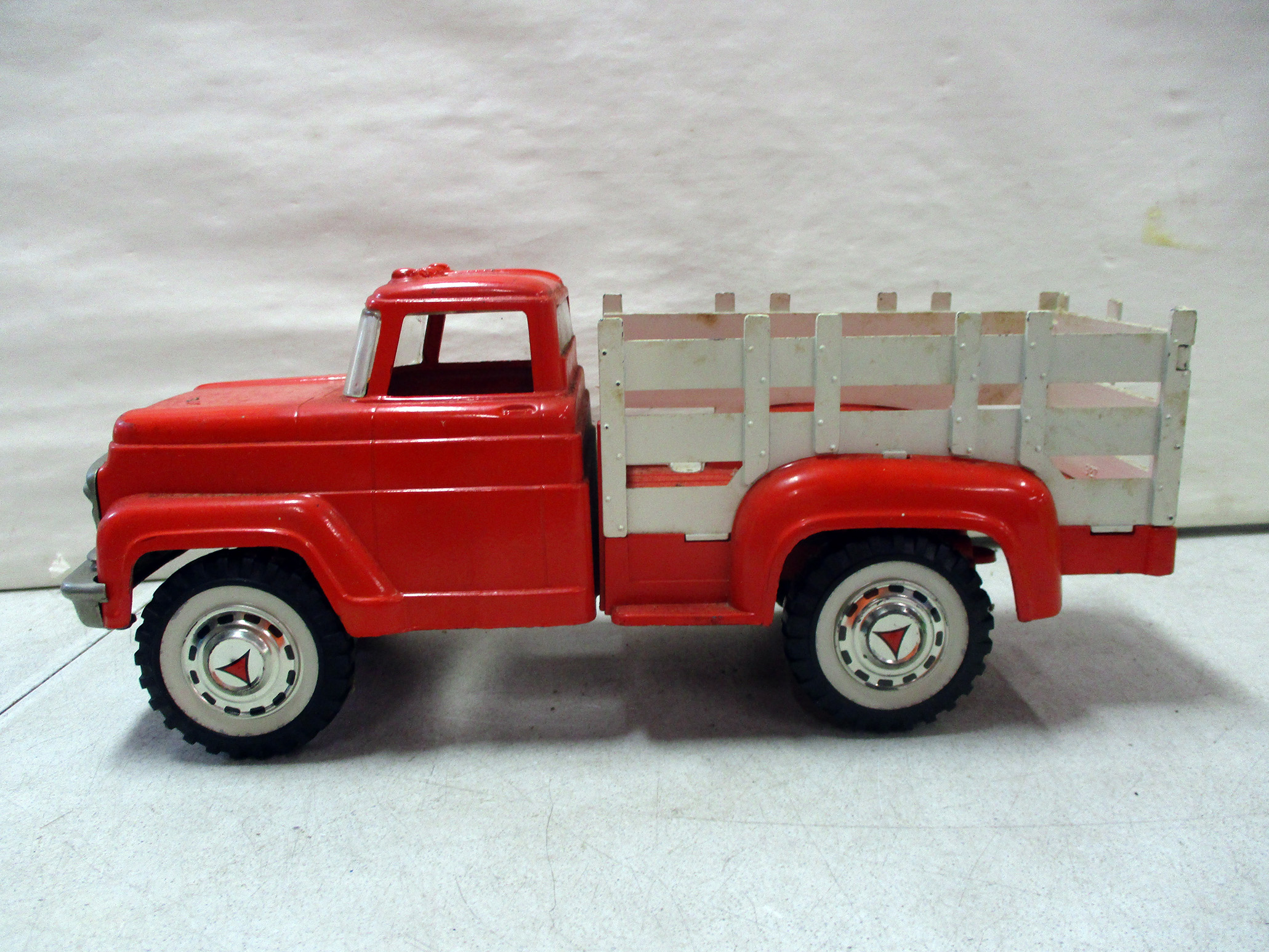 This is a vintage Structo toy truck made in the United States. Crafted from metal, it features the logo of Pacific Intermountain Express (P.I.E). The toy is estimated to be from the mid-20th century and retains its original paint and decals. (Click image to see high resolution version).