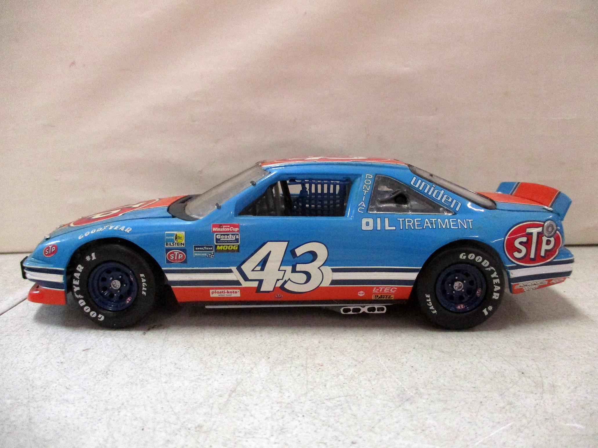 1:24 scale die-cast replica of the 1981 Richard Petty Buick Regal NASCAR race car. Comes in its original packaging, featuring a window box design for display. The car features the iconic #43 and authentic sponsor details from the era. Suitable for collectors and NASCAR enthusiasts. Condition appears to be new in box with minimal shelf wear. (Click image to see high resolution version).