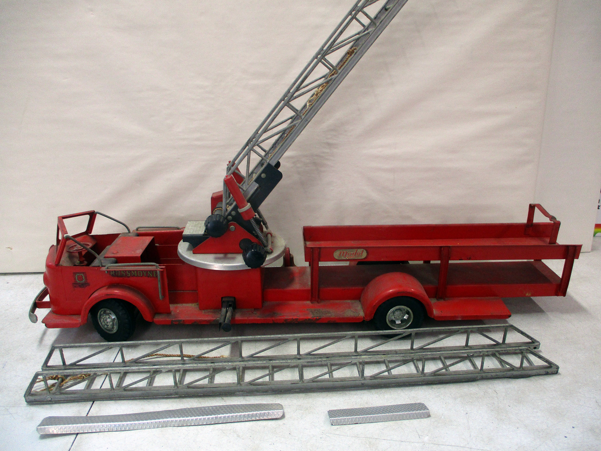 Vintage Mobil tanker truck toy from USA. Made of metal, depicting a red truck with Mobil branding. (Click image to see high resolution version).